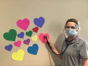 Upon the onset of the COVID-19 pandemic, restrictions kept residents from gathering for music therapy to sing and practice for rock band performances. Lindsey, who usually is seen with a guitar slung over her shoulder or carrying a large case full of hand chimes, quickly changed her routine and gracefully transformed into a music therapist in a face mask, face shield and armed with a digital stethoscope and recording device. She began capturing the internal percussion of residents, the heartbeat, each unique in its own way and a rhythm charged with emotional power. With the recorded beat, Lindsey is layering and weaving the beat with recognizable songs or lyrics selected by the resident or the resident’s family. Variations of the recordings include residents reading letters or poems and blending the spoken recordings together with the beat. Each version different, individualized, and each with a personal touch. She calls them Heartbeat Treasures.